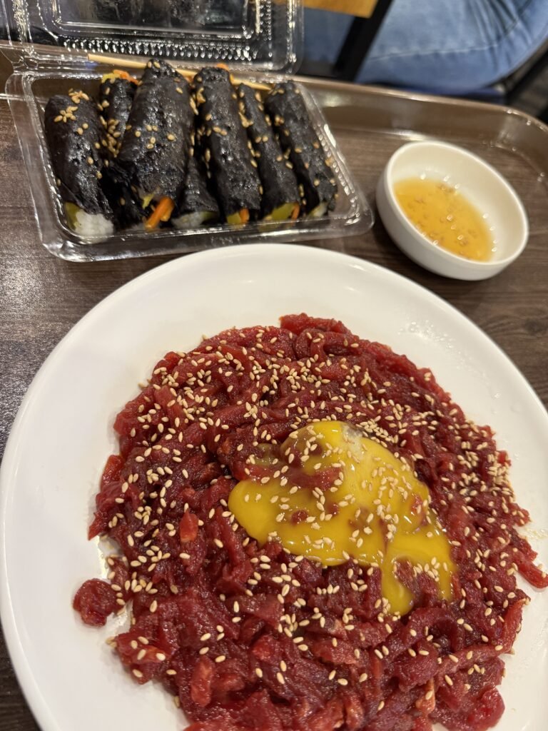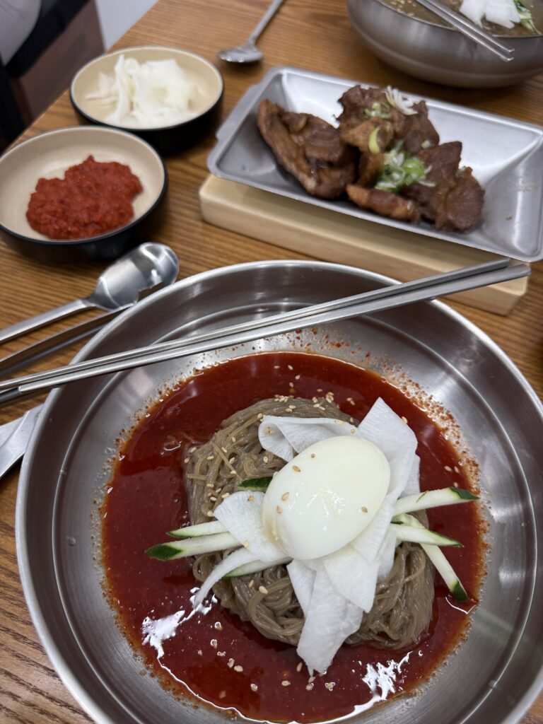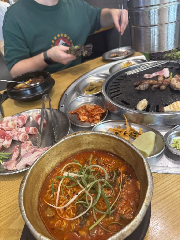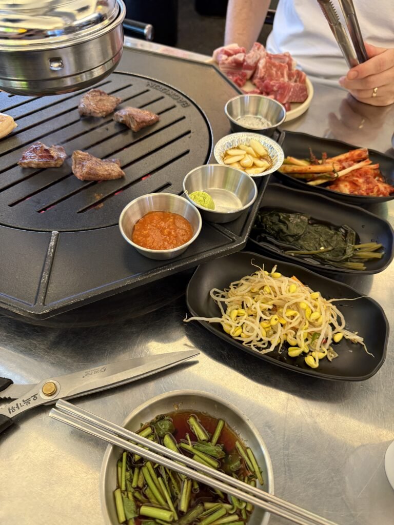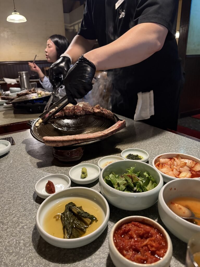 If you like meat, Mongtan is non‑negotiable. Famous for its big dino ribs (which Mark Wiens made a lovely video about), this was hands down one of the best Korean BBQ restaurants in Seoul. It’s a little different in that they cook it for you, but that’s not the worst thing because you can focus on the eating. Everything was rich, smoky, and deeply satisfying, and I can confirm that I seriously overate. If someone asks me which one restaurant they’d recommend in Seoul, this is the one I always mention first.