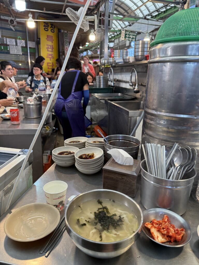 • Gwangjang Market: busy, chaotic, and great for trying lots of Korean street food in one go, but the prices are much higher and tourist trappy (also the Netflix noodle lady is there, and her noodles were mighty tasty).