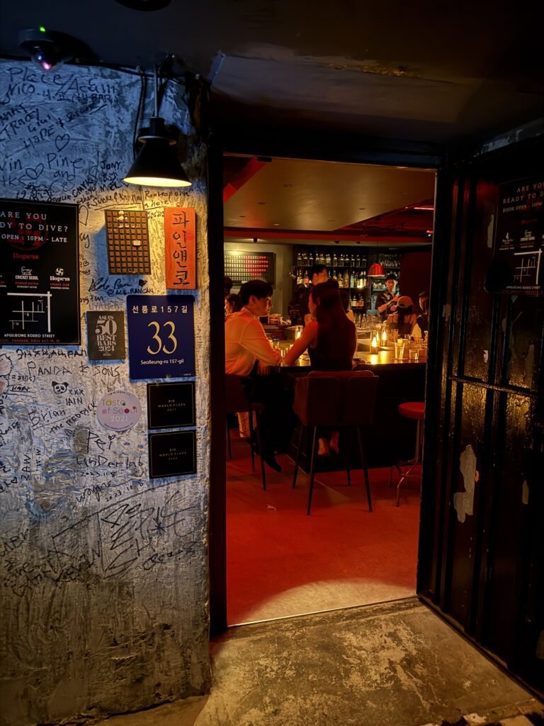 Seoul does cocktails well, but it’s as costly as going out in the UK and US. Whilst I usually really enjoy cocktail bars, Seoul has such a great pub-esque/bbq nightlife that it’s almost not needed, but of course for a special occasion these places are a treat. Do book these places in advance, or you’ll likely be turned away.